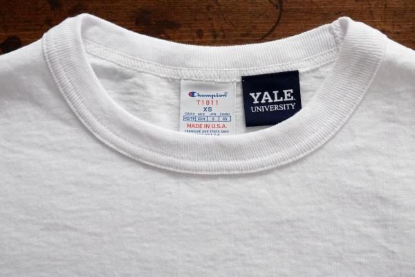 Champion Short Sleeve T-shirts "T1011"。何と言っても特徴的なのはその素材感!ですが、細かなデザインや仕様も魅力的です。両サイドに繋ぎ目がない丸胴仕様になっており、着たときのストレスがなく、なおかつとっても丈夫になっています。また、ヴィンテージTシャツに特徴的なバインダーネックを採用。帯状の襟パーツを見頃に包み込むように縫製することで、強度が増しています。愛用する度に、お洗濯を繰り返す度に味わいが増していく。T1011はそんなTシャツ。きっとあなたの相棒の様な存在になることでしょう。