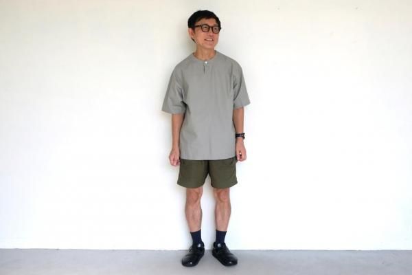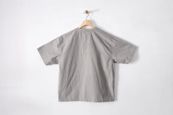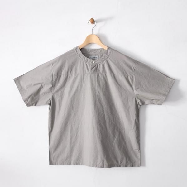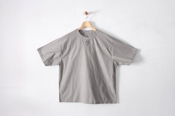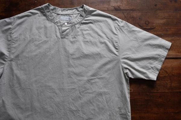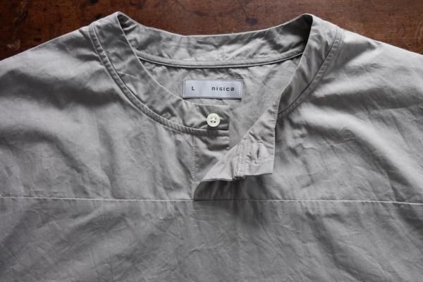 nisicaのcrew neck shirtsは、上質な細番手のコットン糸を高密度に織り上げたタイプライタークロスを使用した半袖Tシャツ・タイプのシャツ。脱ぎ着をしやすいように、首元がヘンリーネック的な仕様になっています。とってもシンプルなデザイン。ゆったりとしたシルエット。1枚で着ていただくと、Tシャツよりも涼しく感じられます。色合いは2色。blueはややグレイッシュな色合い。greyは、暗くない比較的明るいグレーです。どちらもコーディネートしやすいと思います。気になる方は是非!classicoにてお試しください。