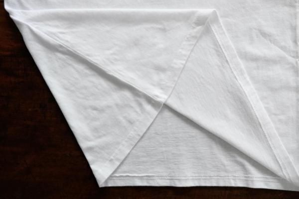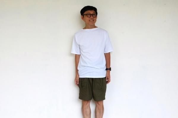 Ouessant(ウエッソン)と比べて、薄くて肌触りの気持ちいいコットン素材を使用して作られた半袖のTシャツがPiriac(ピリアック)。Ouessantの素材が「ごわっ」としているのに対して、Piriacの素材は「さらっ」としています。細番手の上質なコットン糸によって織られた薄手でありながら吸湿性の高い素材です。Piriacは創業以来ほとんど変わること無く受け継がれてきた伝統のデザインに基づいて作られています。ボートネックのデザイン、身幅や着丈のバランスなど日本人にも着こなしやすいTシャツです。袖丈は半袖よりやや長め。肘が少し出るくらいの長さで、腕周りをすっきりと見せてくれます。今回ご紹介するのはPiriacでも一番人気となっている白無地Neige。1枚でも着れる(透けも気になりません)し、インナーとしてもご愛用いただけます。大活躍間違いなしですね。