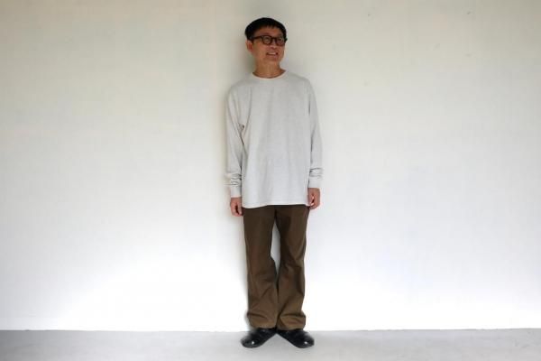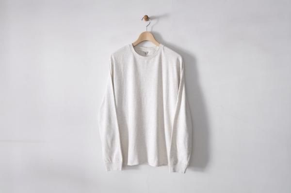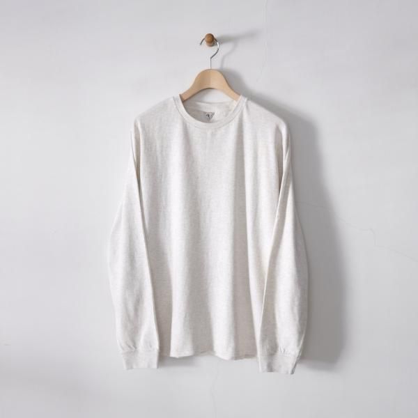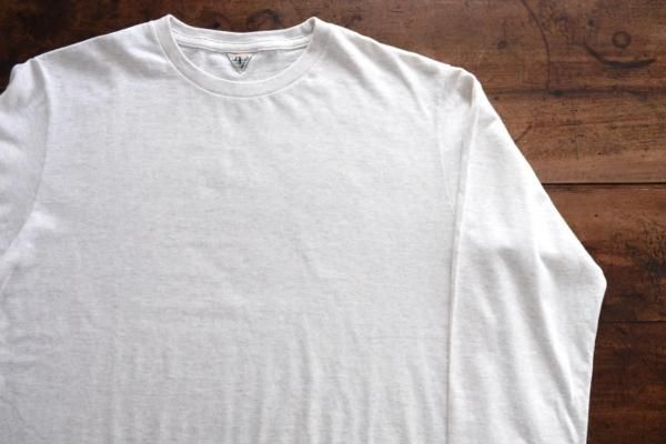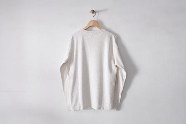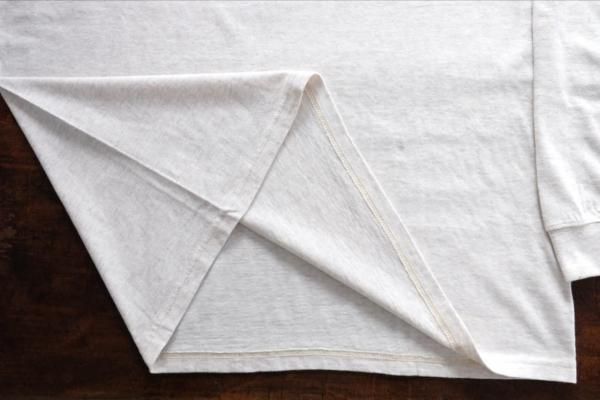 糸の製造過程で発生する落ち綿の中でもオーガニックの綿だけを抽出して、別のバージンオーガニック綿と掛け合わせて紡績された有機リサイクルコットン「オーガニック・ラフィー」。FilMelangeの定番素材となる番手をたくさんの試作の中から探り当て、吊り編み機でゆっくり・ふっくらと編んで、高温多湿な気候の中でも着心地のいい素材を探究し続けています。Filmelange Dollはシンプルデザイン・ゆったりシルエットの長袖Tシャツ。何と言ってもこのTシャツの魅力は着心地のよさ。このDollは1枚でもインナーとしてもご愛用いただくことができます。メンズではありますが、実は女性にも人気があるんですよ。老若男女にオススメの長袖Tシャツです!