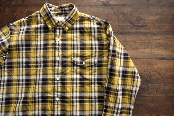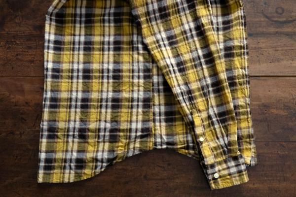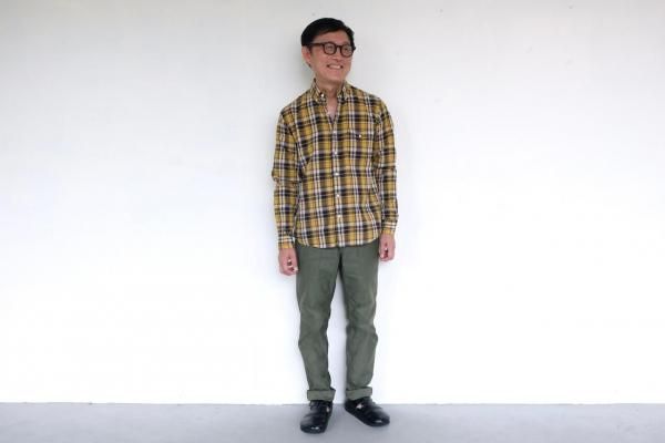 cotton linen checkは比較的薄手で軽やかなチェック生地。ほぼオールシーズンご愛用いただくことができそうです。組成はCotton 86%、Linen 7%、Ramie 7%。向日葵のような色合いのイエローにブラウン、ブラックが織り込まれたチェック柄です。まさに僕好みのチェック!このシャツ1枚、洗い晒しでも、アイロンを掛けても、お洒落な雰囲気を醸し出すことができそうです。寒い時期には、セーターやカーディガンのインナーとしても魅力的なシャツです。気になる方は、是非!classico店頭にてご確認・ご試着ください。