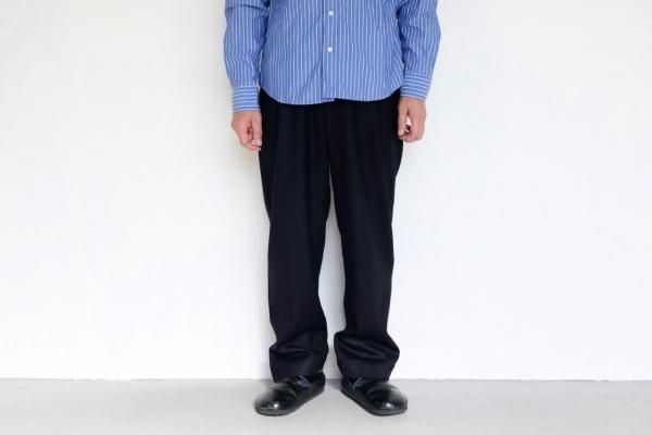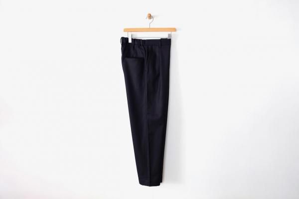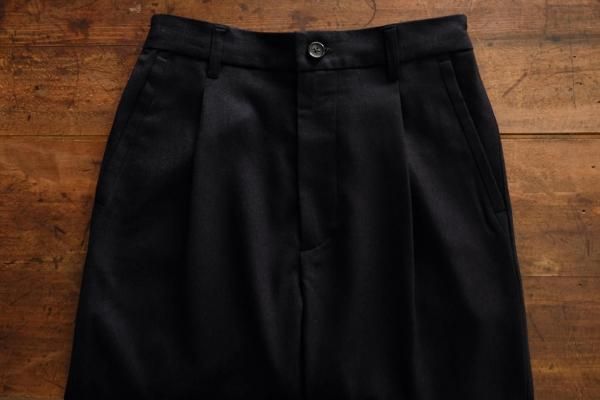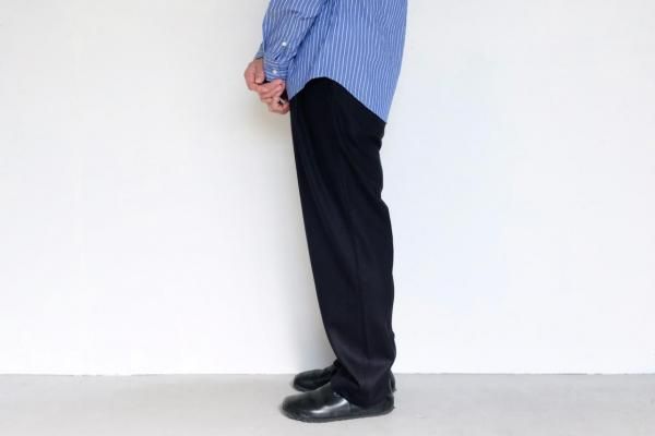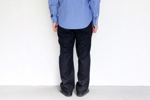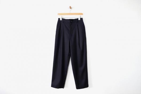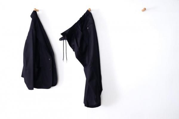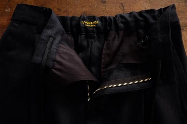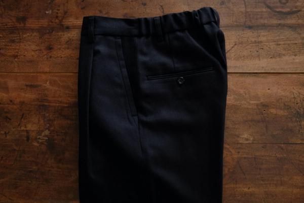今回ご紹介するのは、*A VONTADE 1 Tack Easy Trousers。オン・オフ問わずにご愛用いただけるイージーパンツ仕様のトラウザースです。フロント部分はワンタック入りで、ヒップからワタリにかけてゆとりがあり、裾にかけてテーパードしたシルエット。ビジュアル的にはスラックス感を持たせつつ、カジュアルパンツとしてもはけるように、ウェスト後ろ部分にはゴムを入れてあり、前見頃内側に設けたドローストリングにて調節することができるイージーパンツになっています。素材は上質な2/60羊毛を使い、通常よりも経糸の本数を増やすことで生地にドレープ感と適度なハリ感をプラスしたウールフランネル。手洗いであれば、お洗濯も可能です。同じ生地で作ったWeekend 2B Jacketとセットアップでご愛用いただくこともできますよ。是非!classico店頭にてご試着くださいませ。
