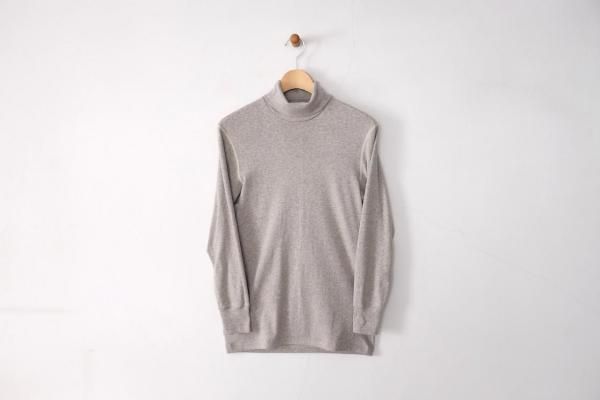 FilMelange Royは、FilMelangeのオリジナル素材・Organic cotton ribを使って作られたタートルネックのカットソー。脇に繋ぎ目のない丸胴仕様にすることで、肌あたりが優しく、ストレスを感じることなくご愛用いただくことができます。Organic cotton ribは、インナーとしての機能を高めるためにアップデートされた新開発のフライスの編み地。世界各国の最良なオーガニックコットンを集めてブレンドしたFilMelange別注の糸を使用し、低速の編み機で、原料の風合いを損なわないように、ゆっくりと膨らみを持たせて編み立てています。直接素肌に着ることも考え、配慮した糸、編み方、製法、デザイン。みなさまにもご堪能いただけたら嬉しく思います。