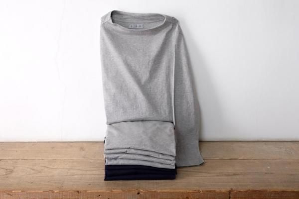 nisicaのguernsey cut & sewnは、nisicaを代表するカットソー。イギリスとフランスの間に位置するガンジー諸島で作られているガンジーセーターのように、ボートネックがやや立ち上がったネックデザインが特徴的なカットソーです。もともとガンジーセーターは、ガンジー諸島の漁師たちが暗がりの中でも脱ぎ着できるように、前後を間違えても問題無いように作られたセーター。寒さの厳しい季節に、首が冷えないように配慮されたデザインだったのだと思います。比較的ゆったりとしたシルエットなので、中にシャツを着て、セーター風に着こなしてもいいでしょう。もちろんTシャツの上に着てもよし。1枚だけで着ていただいても気持ちいいですよ。今回のguernsey cut & sewnに使用されているコットン素材は、比較的薄手でとっても柔らかな素材感。真夏以外の幅広いシーズンに渡ってご愛用いただくことができそうです。今回ご紹介するのは、greyとnavy。どちらもベーシックな色合い。とってもコーディネートしやすいですよ〜。飽きることなく、長くご愛用いただけることでしょう。僕もほぼ毎日愛用中!classico オススメのカットソーです。